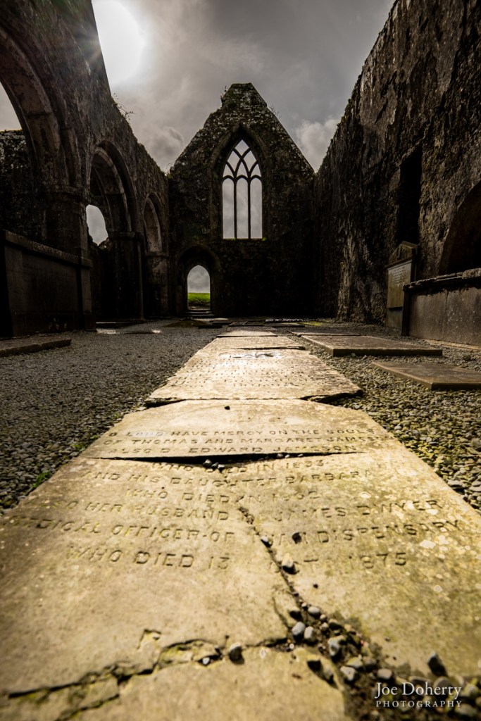In the afternoon we drove to Ross Errily Friary, about 30 minutes away. It was like Chaco Canyon: small doors, ruined walls, and lots of interesting angles. Plus we could walk and climb just about anywhere. The difficulty is trying to make something new out of an old motif.