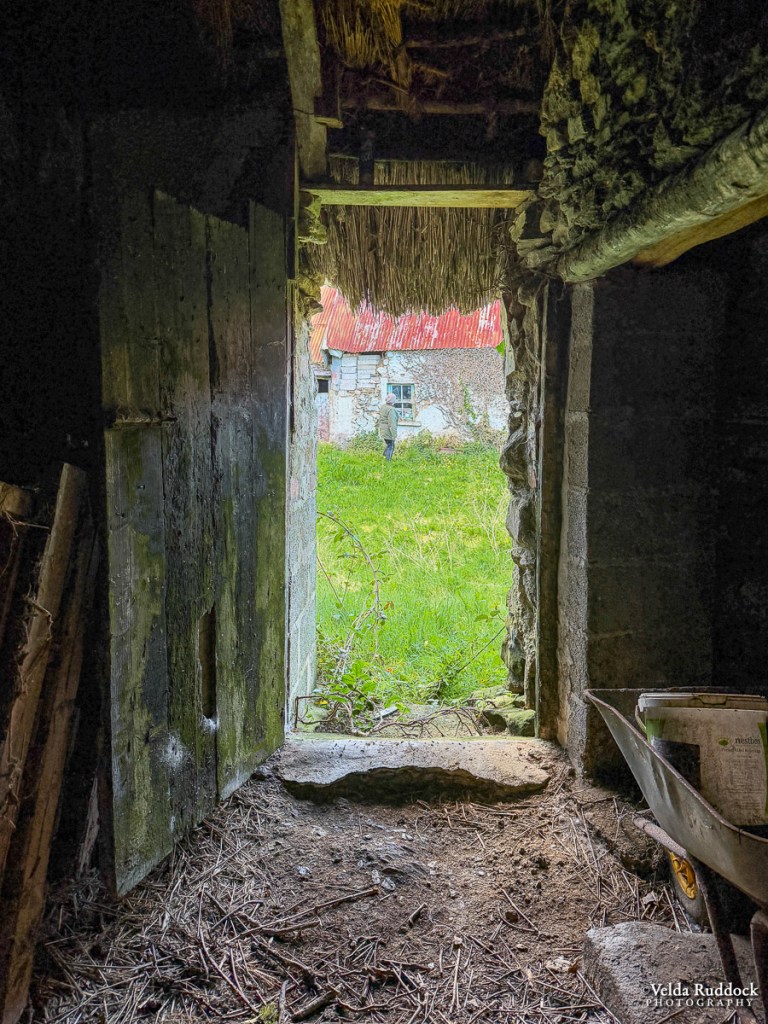 The original one-room building stands at one end of a courtyard of similar buildings. Unoccupied for generations, used for lambing or storage, it’s in rough shape, as are the other buildings in the small complex. The family lives in an adjacent house, and the milking barn and other buildings are nearby. These particular buildings don’t belong to the family anymore, and the owners aren’t currently interested in selling them, so they are falling into disrepair.
