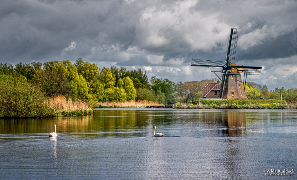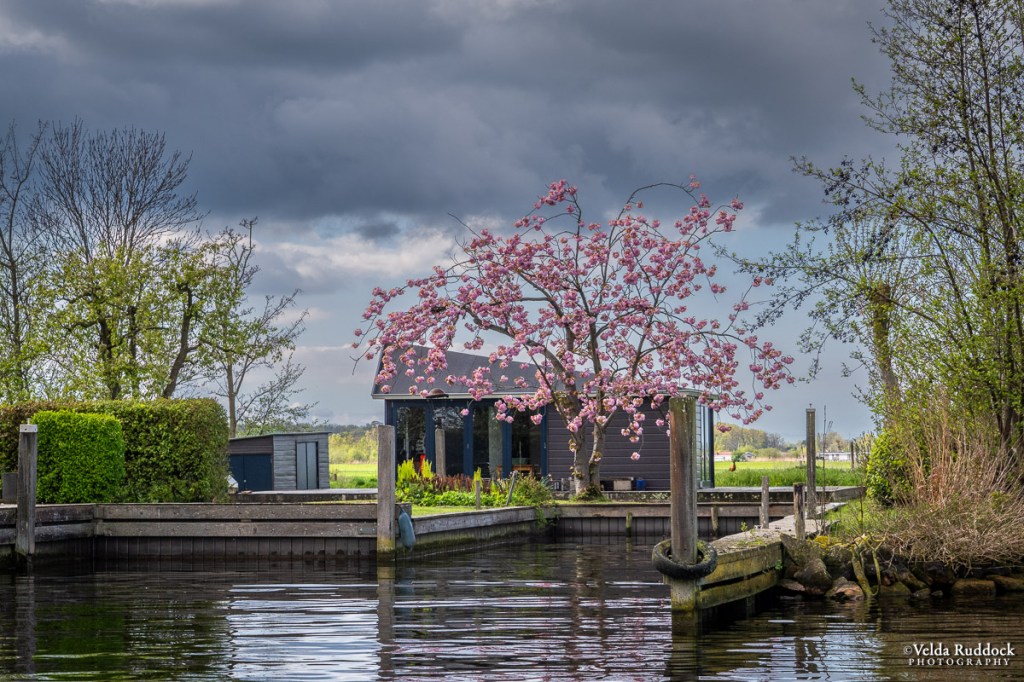 Blank and her husband, Jan Bart, live on the water side of Warmond, a village that hasn’t changed much over the years. The view from their front room is a small marina and windmills. We saw grebes, swans, and hares. It being Holland, it was sunny, then pelted rain, then sunny, and repeat. During one of the sunny periods we motored to de Kaag, where I spent part of every summer that I could. It was, of course, nostalgic.