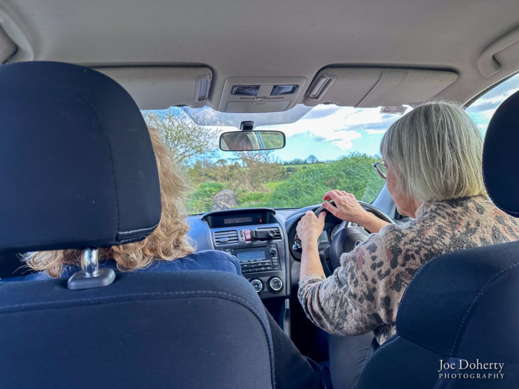Mary took us back to her house in Drumdowney Upper, and as we drove past the set back houses at the base of the hill she began remarking on the residents. That’s her nephew’s house, this one is her brother’s, that’s the house she grew up in, and this is where her brother raises cattle. Over there was the milking barn where she drove the cows every night. Mary’s house is at the top of the hill.